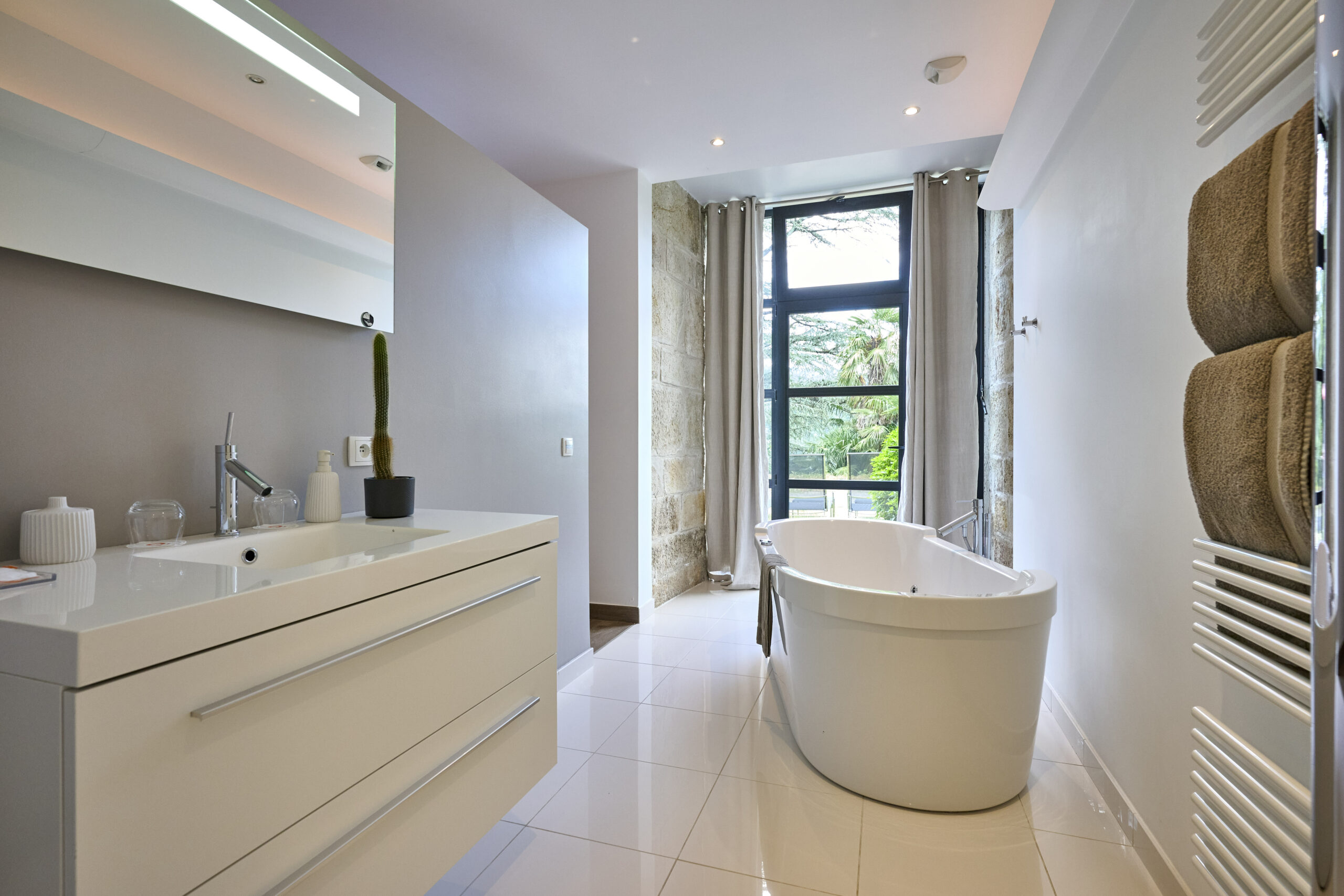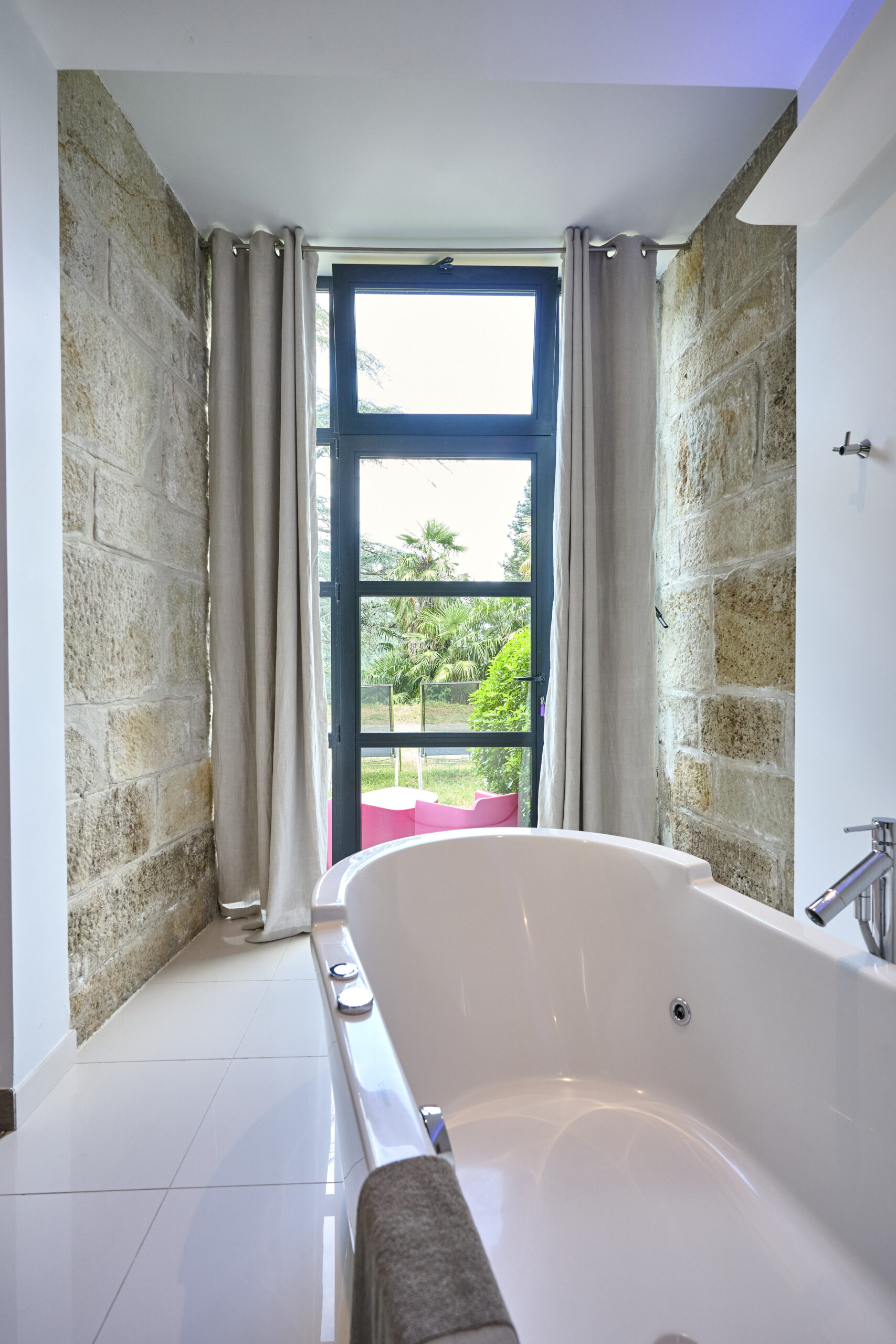 The Château Clément apartment has 2 bedrooms with 1.80 m or 1.60 m double beds, each with its own bathroom with a Philippe Starck-designed freestanding spa bath or large walk-in shower.