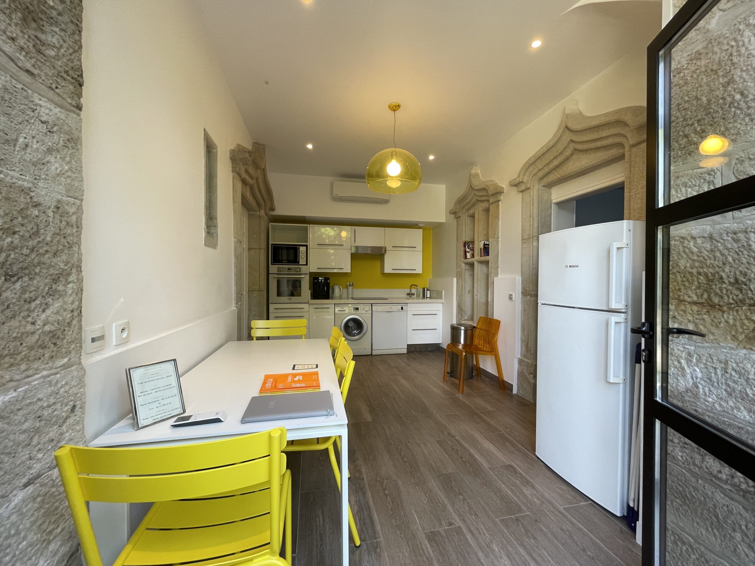 For short breaks or long stays, a kitchen is at your disposal, offering greater flexibility for families. And if you prefer a holiday atmosphere, you can always go up one floor and enjoy meals on the Château terrace.